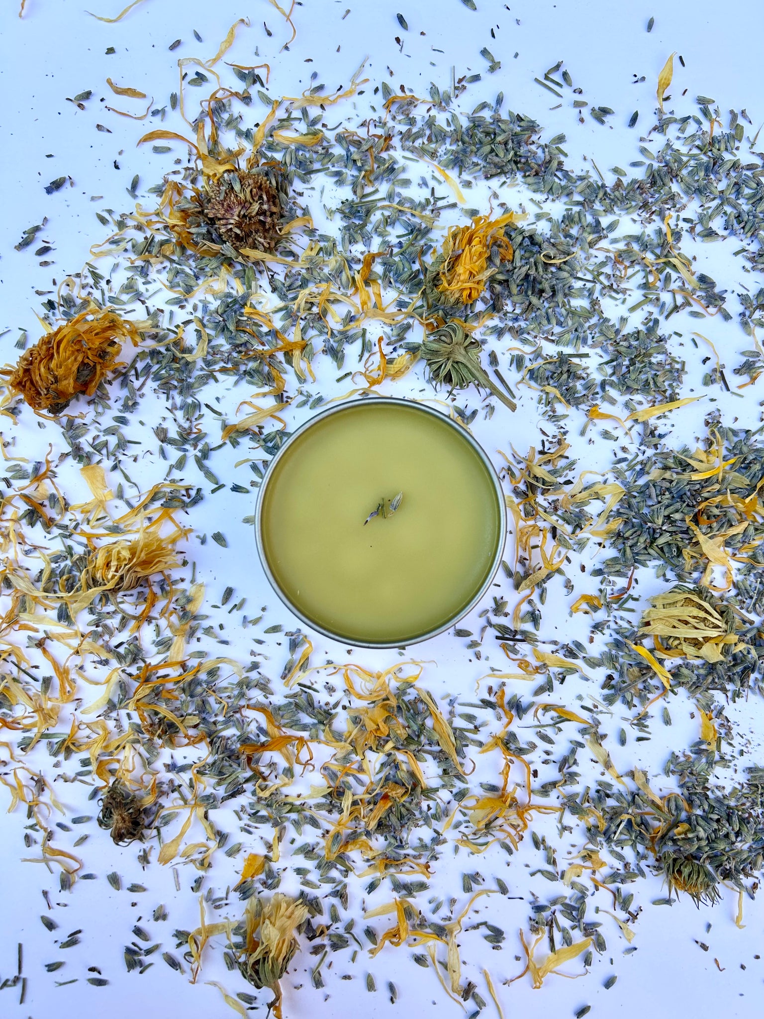 - Herbal Infusion: Organic Calendula, Organic Lavender, Wildcrafted Yarrow, Organic Echinacea, Wildcrafted Plantain Leaf