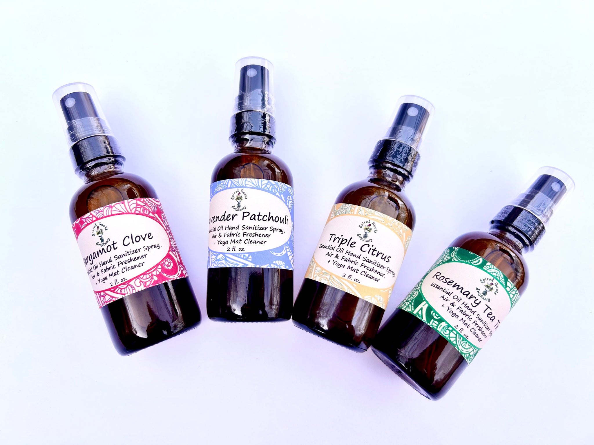 Infuse your space with the calming, earthy fragrance of Lavender and Patchouli. This all-natural essential oil spray is perfect for cleaning your yoga mat, freshening your room, or using as a body spray after a long day. The unique blend of these two oils provides a grounding and soothing aroma, making it an essential for yoga teachers, music festival goers, and anyone seeking a natural, clean fragrance.