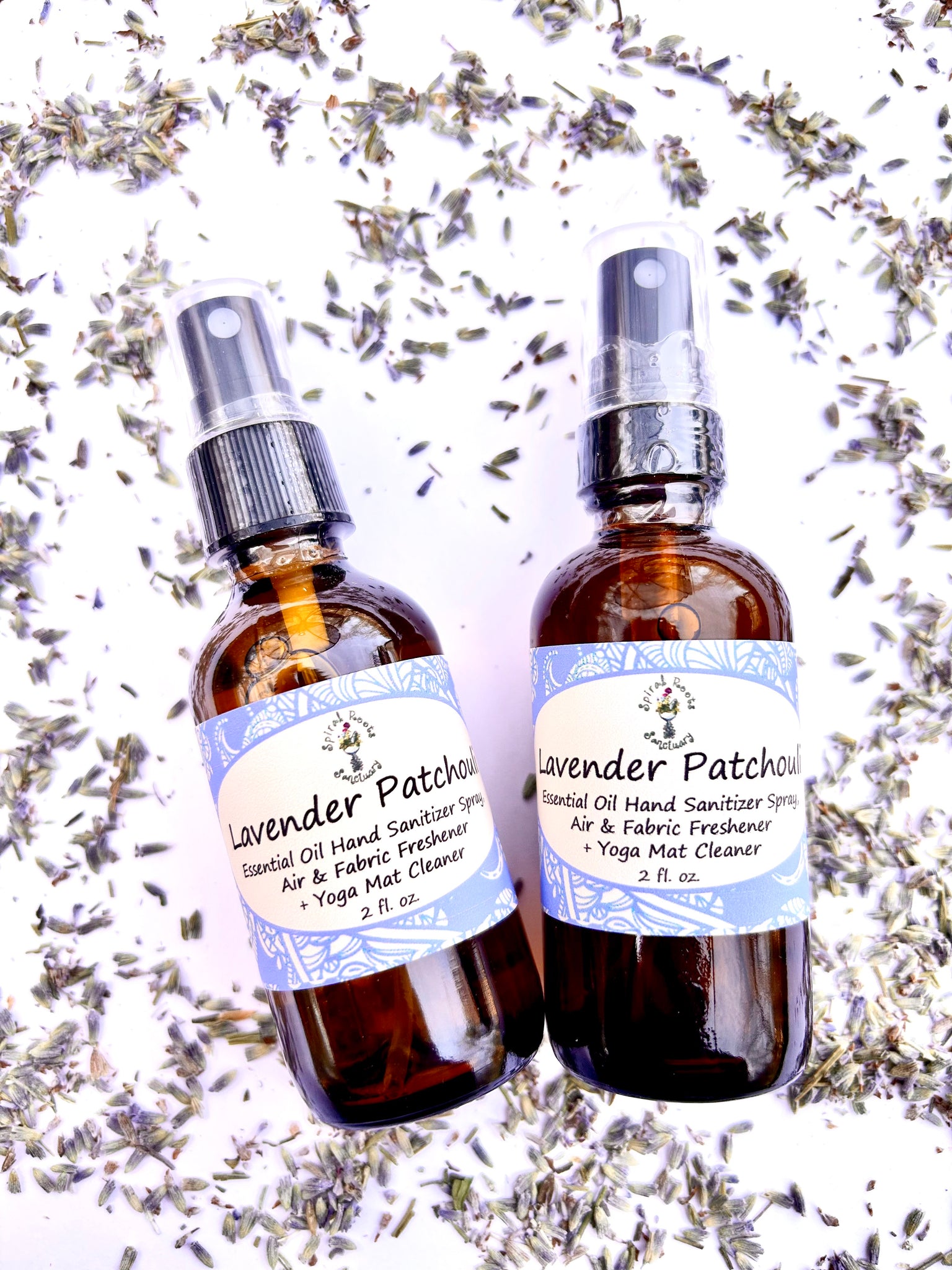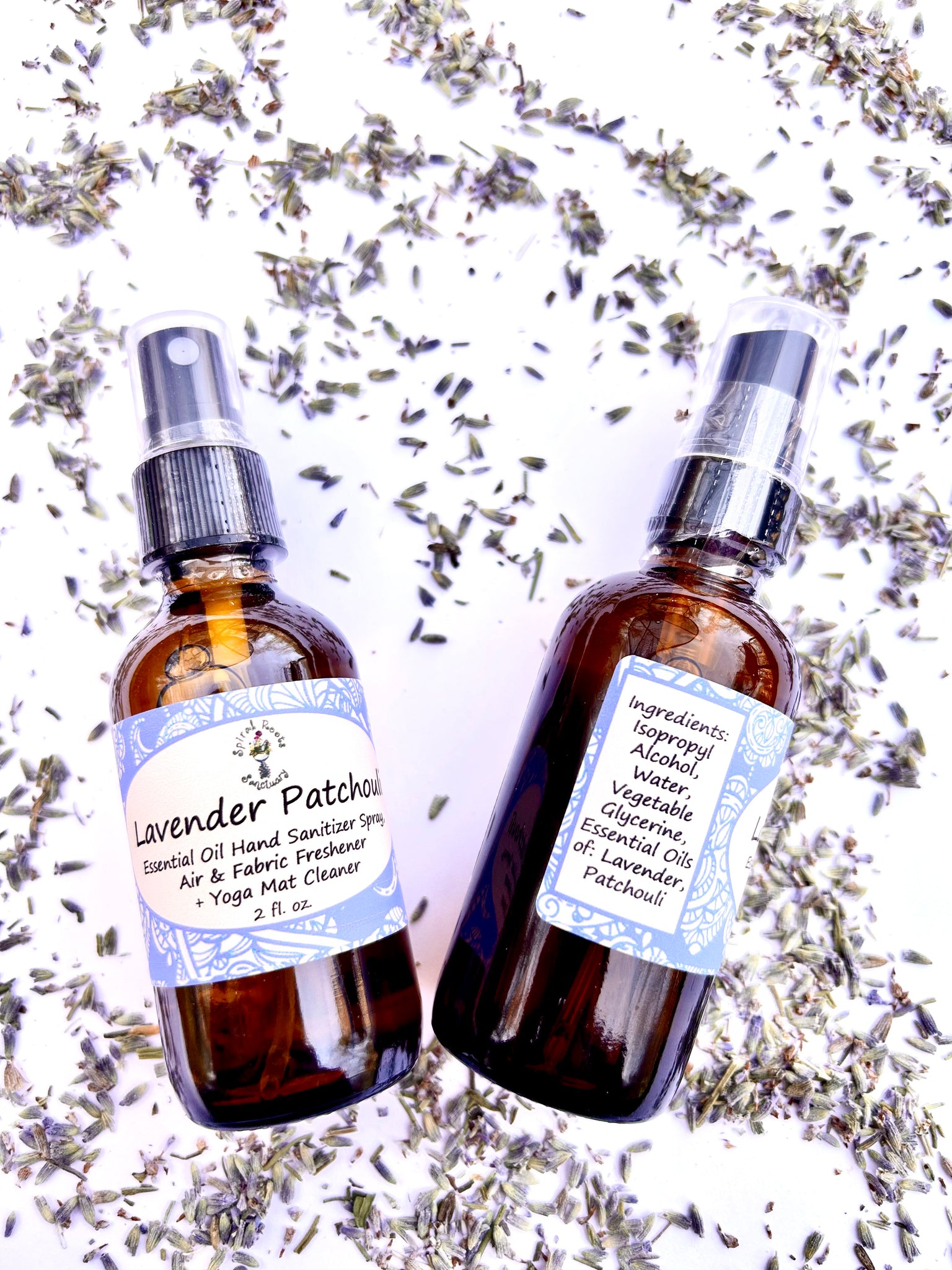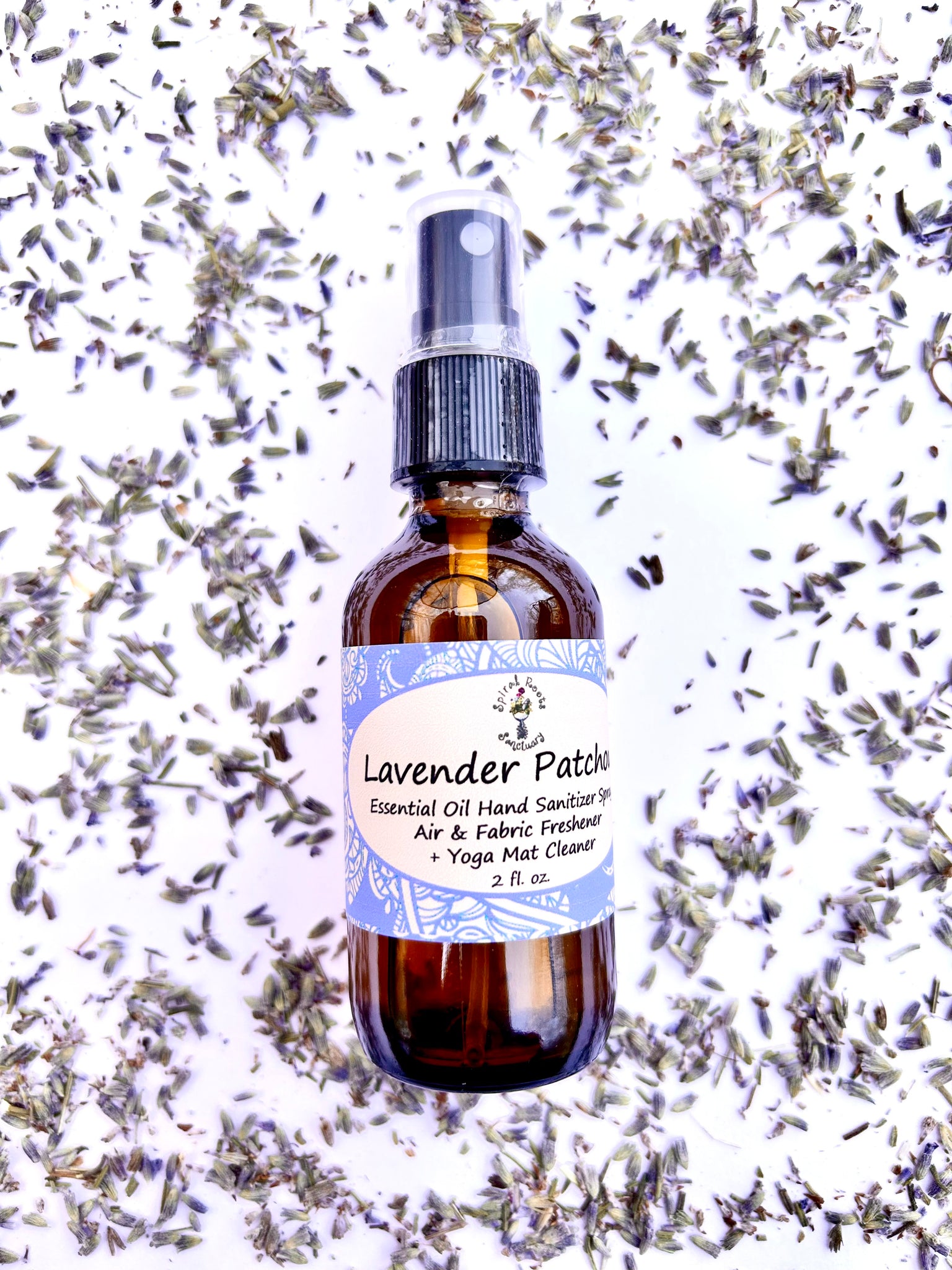 Lavender Patchouli Essential Oil Spray – Yoga Mat Cleaner, Hand Spray, Body Spray, and Room +Fabric Freshener with Natural Essential Oils