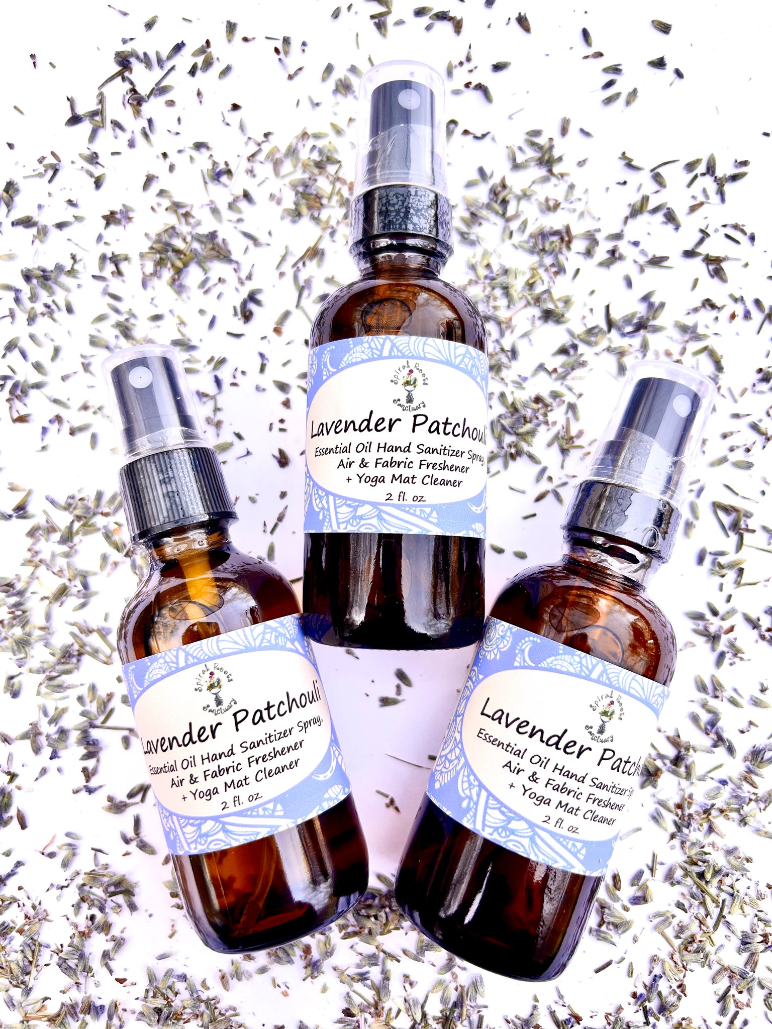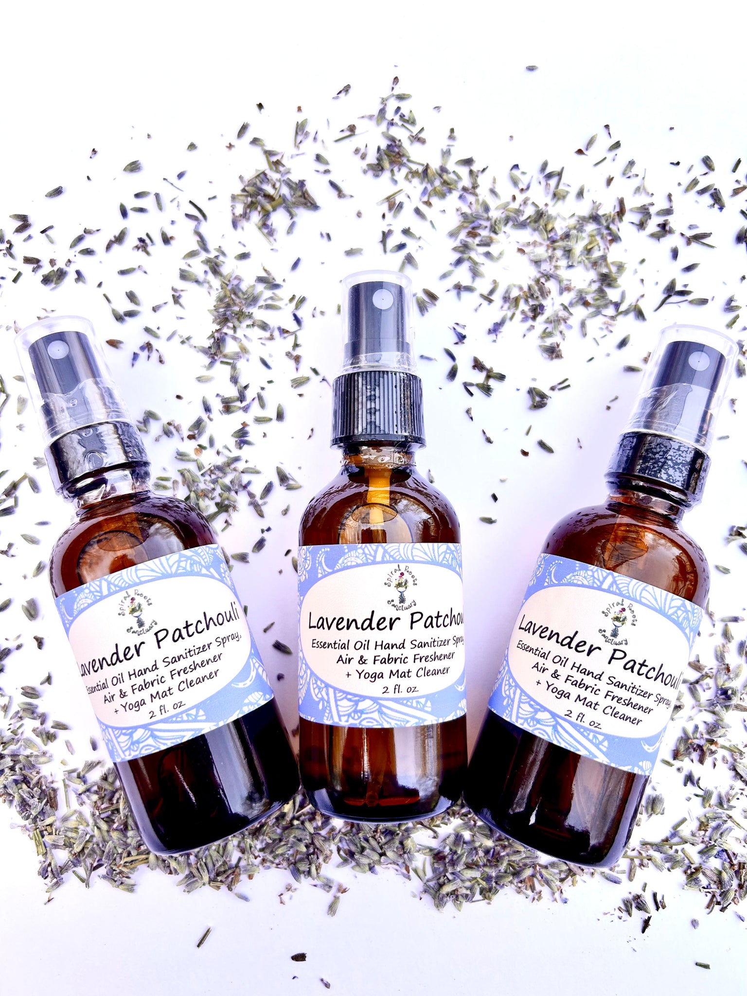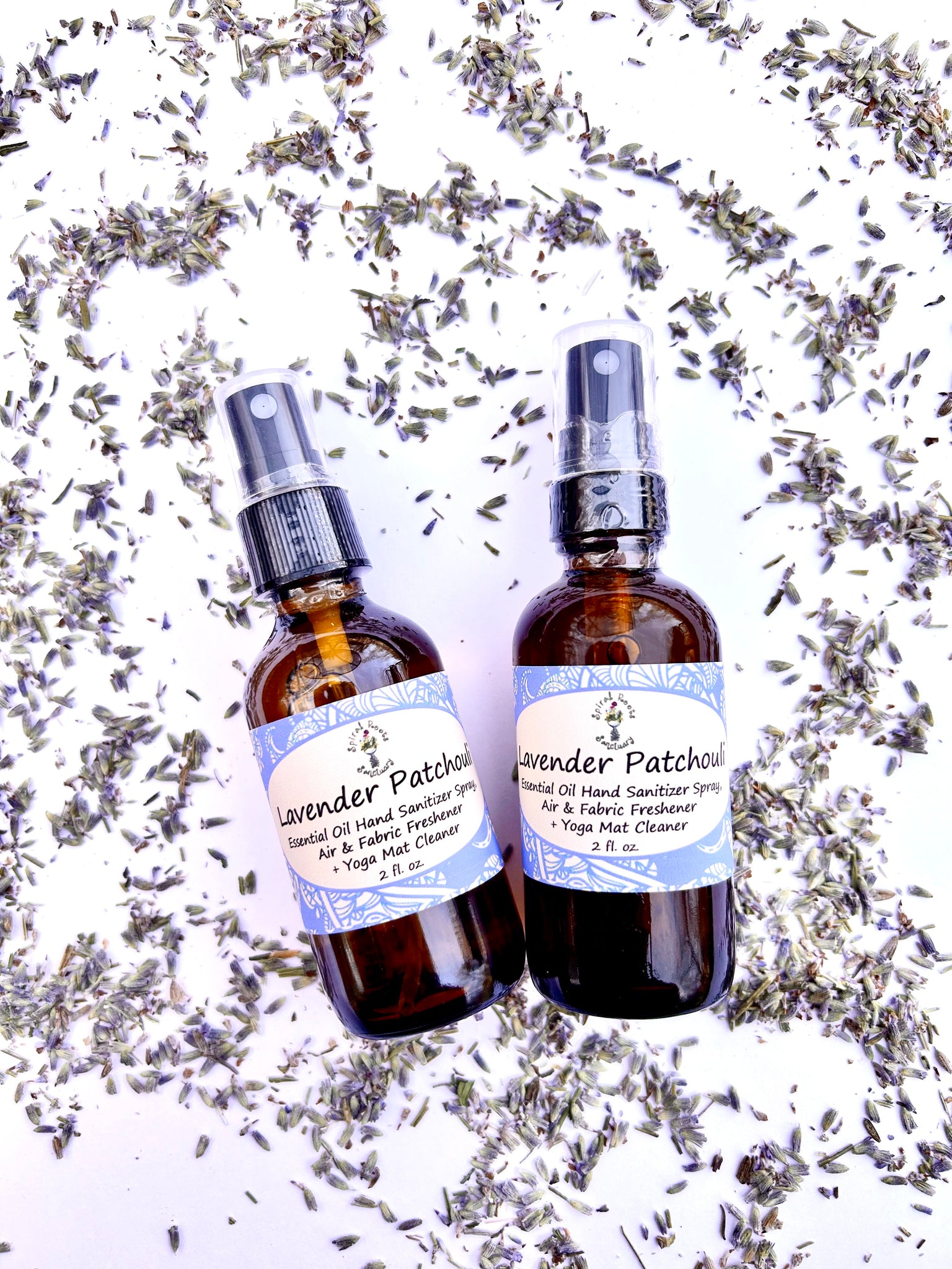Lavender Patchouli Essential Oil Spray – Yoga Mat Cleaner, Hand Spray, Body Spray, and Room +Fabric Freshener with Natural Essential Oils