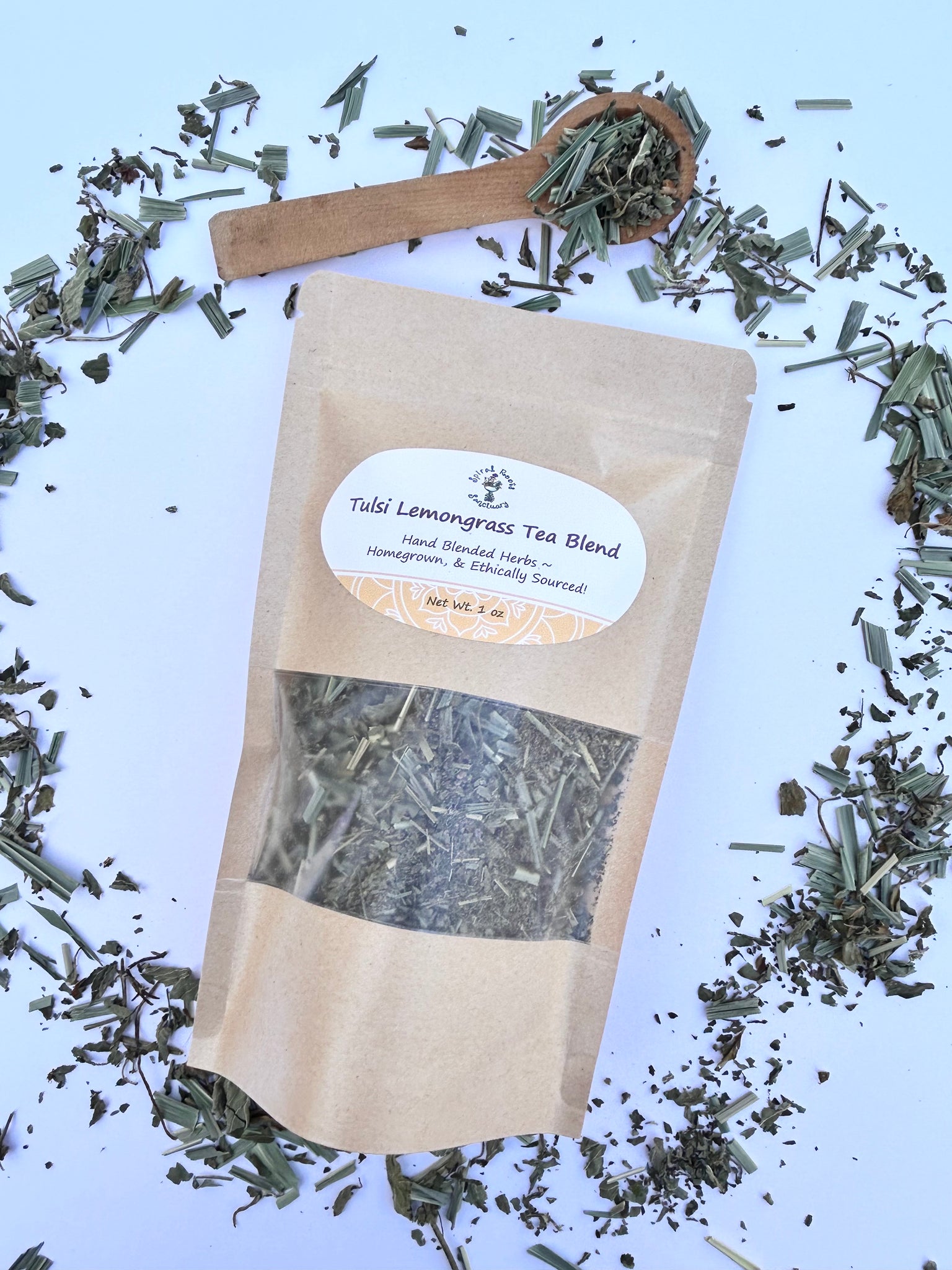 Handcrafted in small batches on our Appalachian homestead, this aromatic, ethically sourced blend is inspired by the wisdom of Ayurveda. Tulsi (Holy Basil) is a sacred adaptogenic herb known for helping the body adapt to stress and restore inner balance, while Lemongrass gently supports healthy digestion and calm after meals.