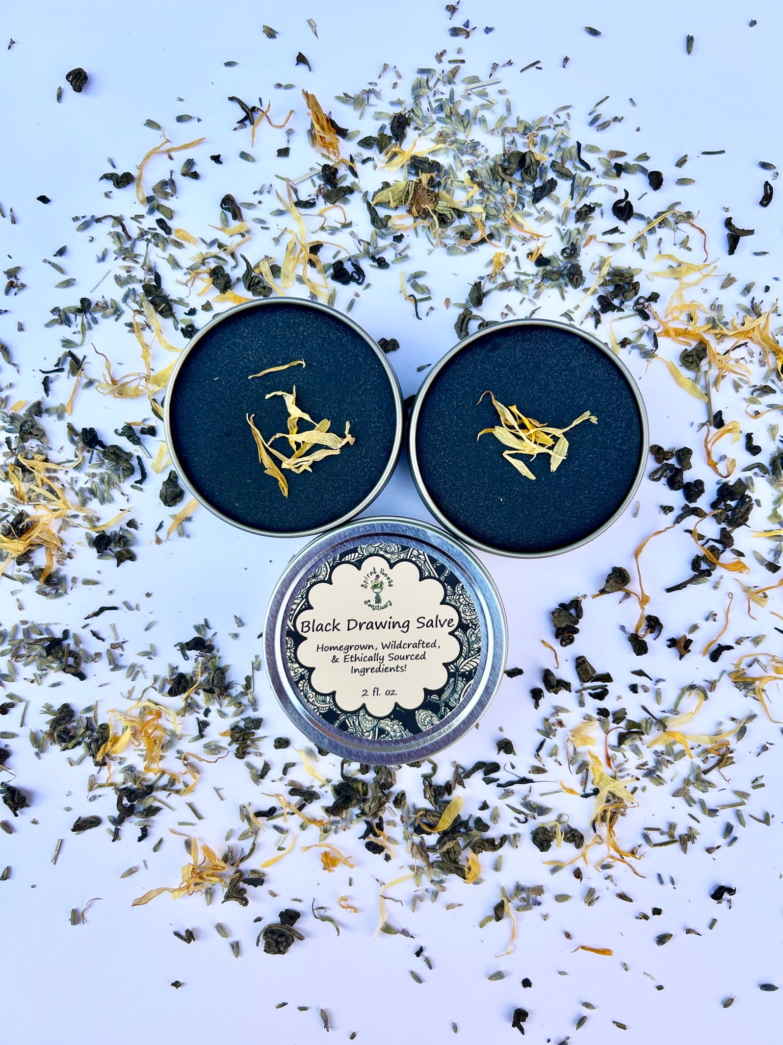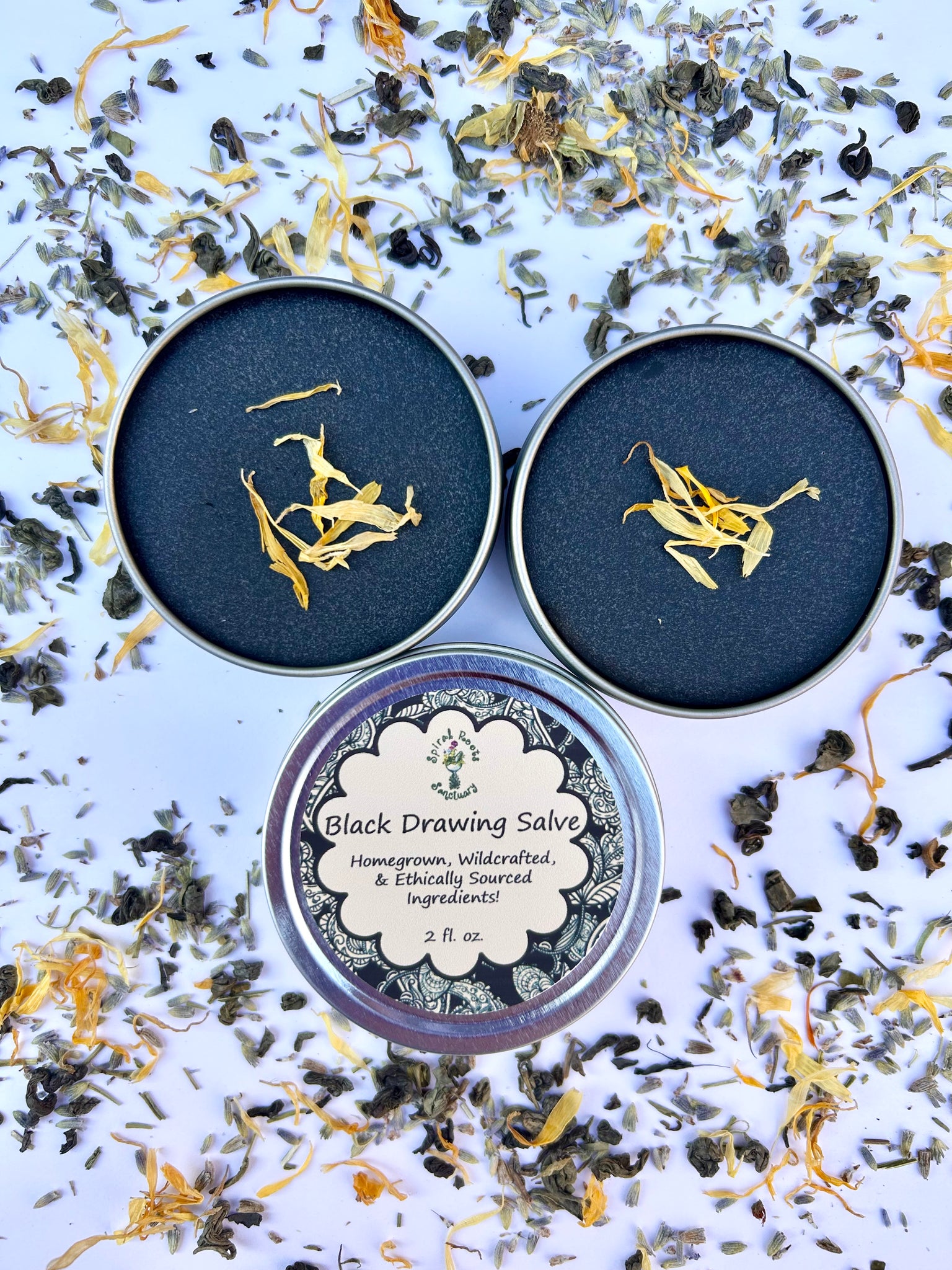 Our All Natural Black Drawing Salve is a natural solution designed to support healthy skin. This versatile salve combines Activated Charcoal and Bentonite Clay to help draw out impurities and cleanse the skin. Perfect for addressing minor irritations such as splinters, bug bites, poison ivy rashes, and blemishes, it provides soothing relief while nourishing the skin.